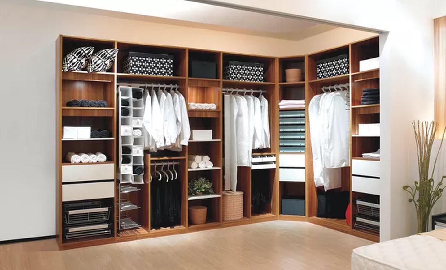 靠墻擺放衣柜的踢腳線位置是需要鋸掉那一部分的,這樣衣柜才能與墻面貼合擺放。